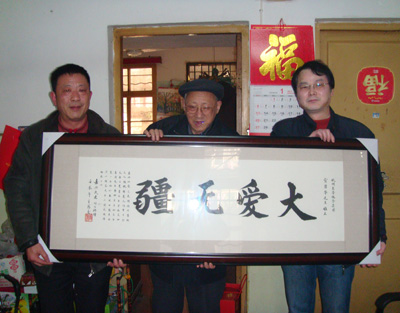 嘉興的民建會(huì)員付乃池老人70多歲了,以前患有嚴(yán)重的高血壓和哮喘病,家中經(jīng)濟(jì)困難,無(wú)法有效醫(yī)治,有了東華的資助金,他積極進(jìn)行治療,身體得到很好康復(fù)??吹轿繂?wèn)組的人員,他流下了感激的淚水,還特地做了一幅“大愛(ài)無(wú)疆”的匾額送給宣董事長(zhǎng)。旁題:君以仁愛(ài)之長(zhǎng)期結(jié)對(duì)幫扶眾人,慷慨解囊,人均年萬(wàn)余元。吾乃耄耋之年,貧病交加,喜得先生資助,月月如是,年復(fù)一年,恰似春風(fēng)甘露,老朽得以頤養(yǎng)天年,不勝感激,僅聊表寸心。表達(dá)了他的感激之情。