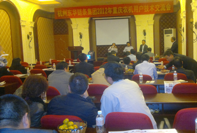 10月19日,重慶杭東鏈條銷售有限公司在重慶怡然大酒店舉行第二屆農(nóng)機鏈條配套產(chǎn)品技術(shù)交流會。參會30多家企業(yè)主要來自重慶地區(qū)。東華總部特派傳動鏈?zhǔn)聵I(yè)部副部長李奎林、輸送鏈?zhǔn)聵I(yè)部高級工程師閔乃忠參會。
