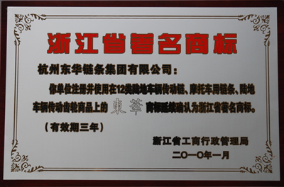 日前,東華集團注冊并使用在12類陸地車輛傳動鏈、摩托車用鏈條、陸地車輛傳動齒輪商品上的“東華”商標(biāo)被浙江省工商行政管理局復(fù)評為浙江省著名商標(biāo)。
