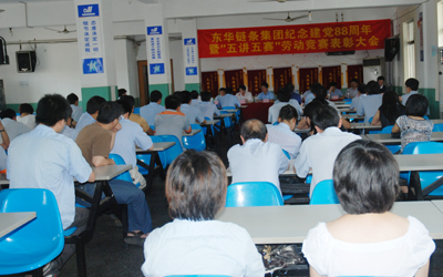 會上,總經(jīng)理張世強作了重要講話。張總說,在“七一”即將來臨之際,我們召開“紀念中國共產(chǎn)黨成立88周年暨五講五賽勞動競賽表彰大會”。首先,我代表集團領(lǐng)導(dǎo)、黨委向受表彰的先進集體和先進個人表示熱烈地祝賀,向他們表示崇高的敬意!號召全體黨員、全廠職工認真學(xué)習(xí)他們的先進事跡和崇高精神,立足崗位、艱苦奮斗,在生產(chǎn)勞動中為企業(yè)建功立業(yè),在推動?xùn)|華集團持續(xù)發(fā)展中做出更大的貢獻。