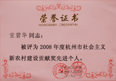 日前,東華鏈條集團董事長宣碧華被中共杭州市委、杭州市人民政府授予 “2008年度杭州市社會主義新農(nóng)村建設貢獻獎先進個人”榮譽稱號。