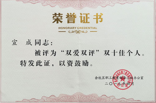 日前,在2019年余杭區(qū)勞動模范和模范集體暨職工創(chuàng)業(yè)創(chuàng)新推進(jìn)大會上,東華鏈條集團(tuán)被余杭區(qū)政府授予“余杭區(qū)模范集體”稱號;副董事長宣成被授予“雙愛雙評”雙十佳個人榮譽稱號。扶梯工程鏈?zhǔn)聵I(yè)部王興全被授予“雙愛雙評”雙十佳個人稱號?!靶扉L明鉗工技能大師工作室”被授予“勞模(工匠)示范創(chuàng)新工作室”稱號。