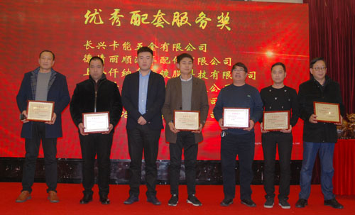 會上表彰了12家“優(yōu)秀供應(yīng)商”和6家“優(yōu)秀配套服務(wù)獎”供應(yīng)商。副董事長宣成向獲獎供應(yīng)商代表頒獎并合影留念。