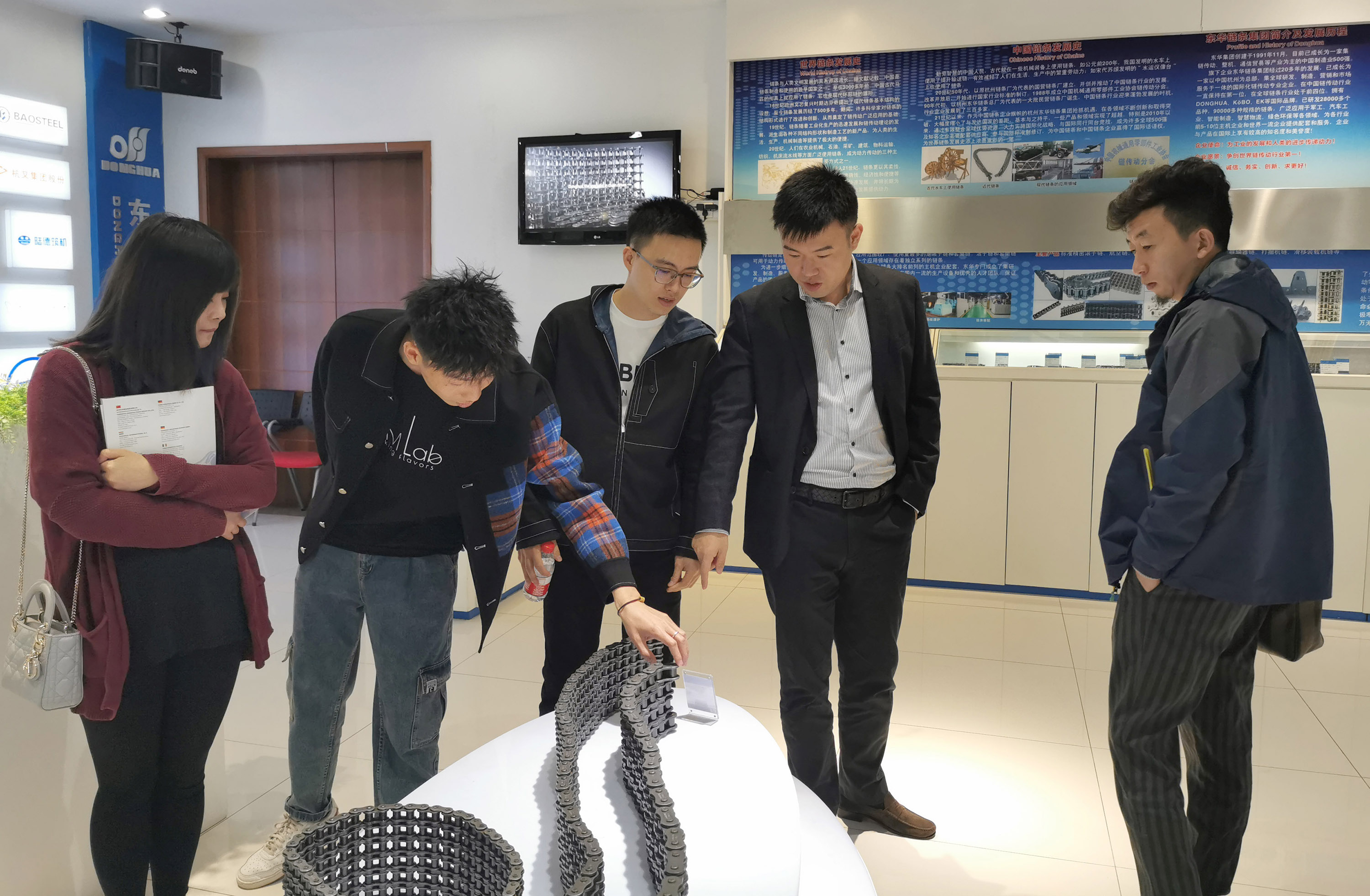 本次浙大新生代企業(yè)家研修班二零屆學(xué)員主要到集團(tuán)公司華寧路廠區(qū)考察。在座談會(huì)上,副董事長(zhǎng)宣成向?qū)W員播放了企業(yè)宣傳片,介紹了東華集團(tuán)三大產(chǎn)業(yè)發(fā)展情況,重點(diǎn)介紹了鏈條板塊的發(fā)展歷程、近年發(fā)展情況、未來發(fā)展愿景及企業(yè)文化建設(shè)、信息化建設(shè)等情況。并陪同學(xué)員參觀了產(chǎn)品展廳、裝備事業(yè)部模具裝配區(qū)、線切割加工區(qū)及汽車鏈?zhǔn)聵I(yè)部零件區(qū)、流水線裝配區(qū)等生產(chǎn)現(xiàn)場(chǎng)。