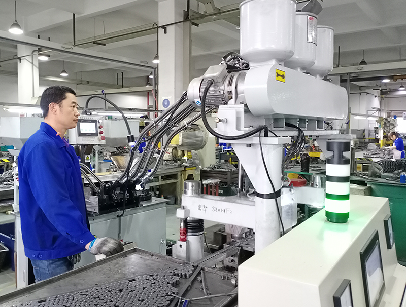 東華積極應(yīng)對(duì)訂單爆發(fā)式增長(zhǎng),為滿(mǎn)足客戶(hù)交貨需求,今年一季度,公司技改設(shè)備投入已經(jīng)超過(guò)了去年全年,達(dá)到了2000多萬(wàn)元。如農(nóng)機(jī)鏈?zhǔn)聵I(yè)部不斷加大技術(shù)革新,對(duì)ZGS外附板、S52外附板、A55外附板等落料壓彎一體化模具開(kāi)發(fā)、投入100HHA成條機(jī)裝配設(shè)備代替人工裝配、組建CA、ZGS和A960系列裝配流水線代替原來(lái)的人工榔頭裝配,大大提升了生產(chǎn)效率,以滿(mǎn)足客戶(hù)的交貨需求。