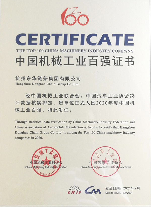 東華鏈條集團(tuán)再次榮登中國機(jī)械工業(yè)百強(qiáng)榜,排名第55位,這是東華鏈條集團(tuán)連續(xù)六年榮登中國機(jī)械工業(yè)百強(qiáng)榜,也是中國鏈傳動行業(yè)唯一上榜企業(yè),展現(xiàn)出東華強(qiáng)勁的健康發(fā)展活力。