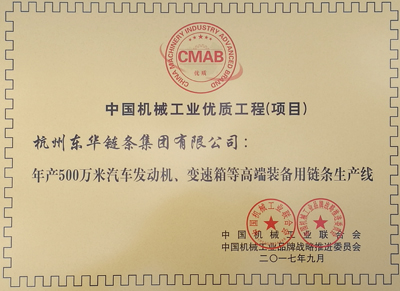 東華“年產(chǎn)500萬米發(fā)動機、變速箱等高端裝備用鏈條生產(chǎn)線”榮獲中國機械工業(yè)優(yōu)質工程(項目)獎