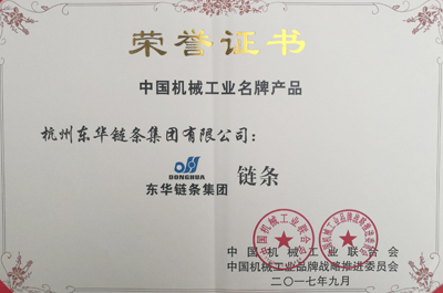 “東華”牌鏈條榮獲中國機械工業(yè)名牌產(chǎn)品稱號