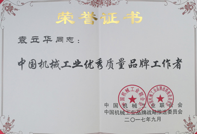 副總經(jīng)理袁立華被授予“中國機械工業(yè)優(yōu)秀質量品牌工作者”稱號