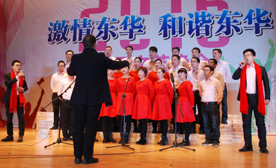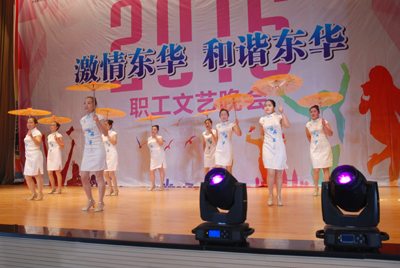 晚會主題為《激情東華,和諧東華》,這是一臺完全由員工自編自導(dǎo)自演的自娛自樂性質(zhì)的晚會,節(jié)目豐富多彩,有獨唱、大合唱、舞蹈、相聲、小品、詩朗誦、戲劇表演等共23個節(jié)目,中間穿插了觀眾抽獎等環(huán)節(jié)。