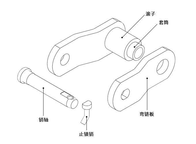 ● 彎板滾子鏈在結(jié)構(gòu)上只有一種彎板鏈節(jié),鏈板的折彎使鏈條能吸收較大的沖擊載荷;銷軸和套筒、鏈板間的間隙較大,在惡劣工況可以保持良好的靈活性。