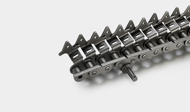 ● 印鐵烘房線鏈條是在標(biāo)準(zhǔn)短節(jié)距精密滾子鏈作為基鏈的基礎(chǔ)上加裝特殊附件的鏈條;典型產(chǎn)品結(jié)構(gòu)為一側(cè)通過安裝內(nèi)、外支撐片來保持鏈條直線度,另一側(cè)通過內(nèi)外附板安裝花架運(yùn)輸物品。