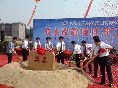 5月20日上午,常州東風(fēng)農(nóng)機(jī)集團(tuán)有限公司 “月產(chǎn)6500臺(tái)輪拖零部件能力技改”等3個(gè)技改項(xiàng)目舉行奠基典禮,拉開(kāi)了東風(fēng)農(nóng)機(jī)“十二五”新一輪大發(fā)展的序幕。鐘樓區(qū)委書(shū)記徐偉南、區(qū)長(zhǎng)潘冬鈴、東風(fēng)農(nóng)機(jī)董事長(zhǎng)宣碧華等領(lǐng)導(dǎo)出席了奠基典禮。