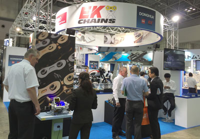 本次展會(huì),東華鏈條集團(tuán)積累了前幾次參展的經(jīng)驗(yàn),不僅展出了各種常規(guī)標(biāo)準(zhǔn)鏈,還分別展出了三家公司的優(yōu)勢產(chǎn)品,如:東華分動(dòng)箱鏈條、日本EK公司最新研發(fā)的3D摩鏈、德國KOBO公司生產(chǎn)的扶梯鏈、汽車鏈條等。展會(huì)還特別展示了裝有分動(dòng)箱鏈條的分動(dòng)箱裝置及裝有日本EK公司生產(chǎn)的摩鏈的TRIUMPH摩托車,吸引了大量各國參展客戶的觀摩與青睞,這也預(yù)示著東華鏈條正朝著高、精、尖鏈傳動(dòng)方向發(fā)展。東華鏈傳動(dòng)產(chǎn)品的不斷創(chuàng)新發(fā)展,進(jìn)一步展示了東華鏈條作為中國鏈傳動(dòng)行業(yè)領(lǐng)頭羊的形象。