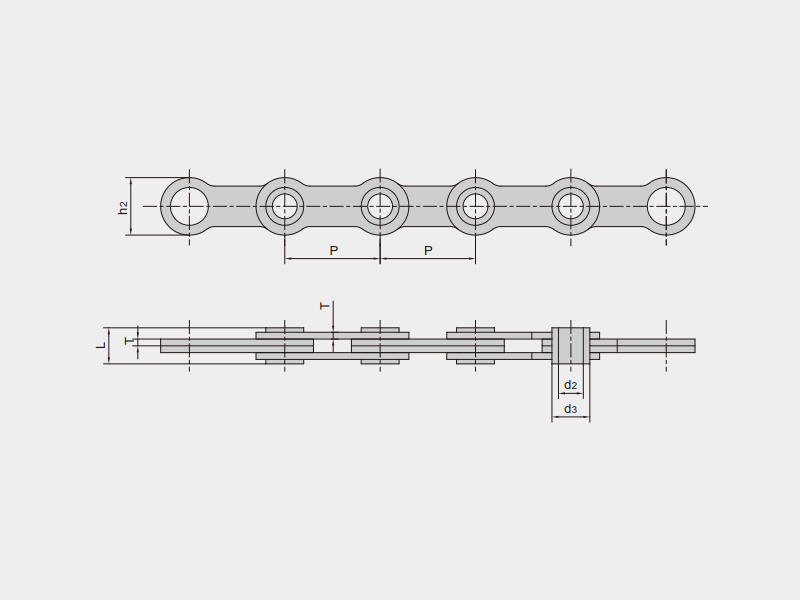 ● 板式鏈符合ISO 4347、ASME B29.8M、JIS B 1804等標準,主要有LH(BL)系列、LL系列和AL系列,以及由標準系列衍生的其它鏈號的板式鏈,節(jié)距范圍5.94mm~76.2mm,可根據(jù)主機用戶的特殊要求進行非標定制,并可配套供應各種類型連接環(huán)(端接頭)、特殊連接件等附件;